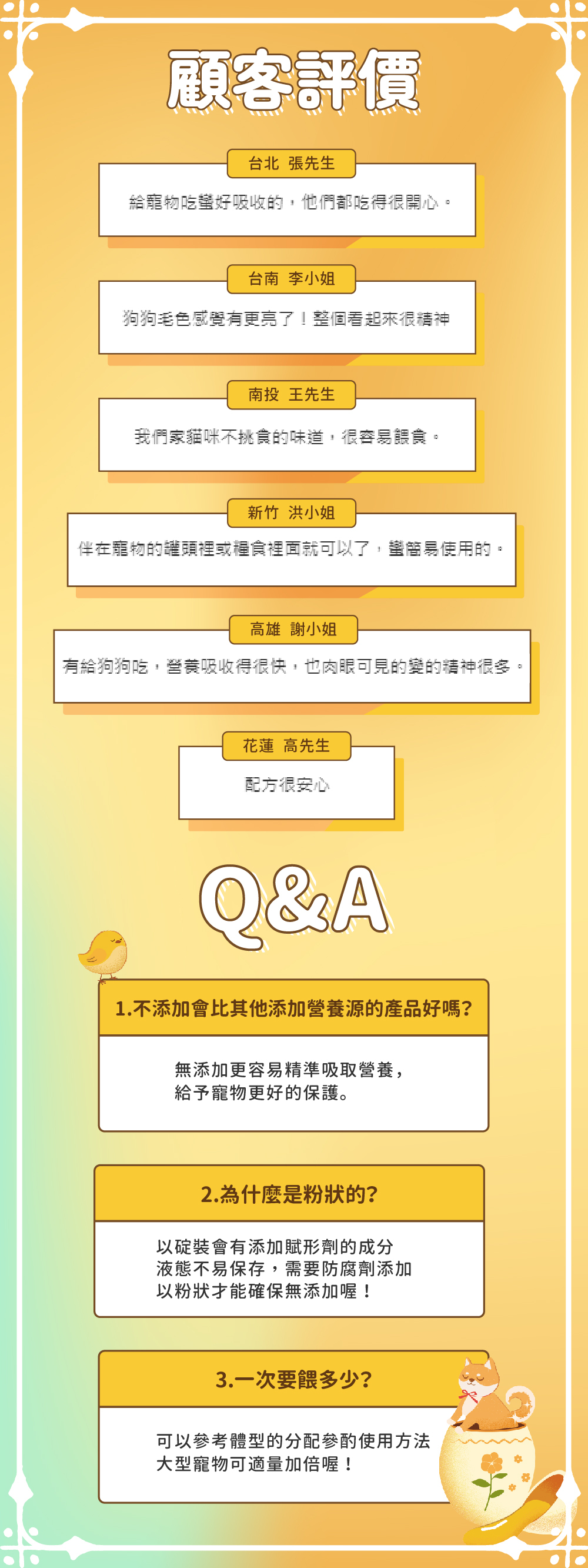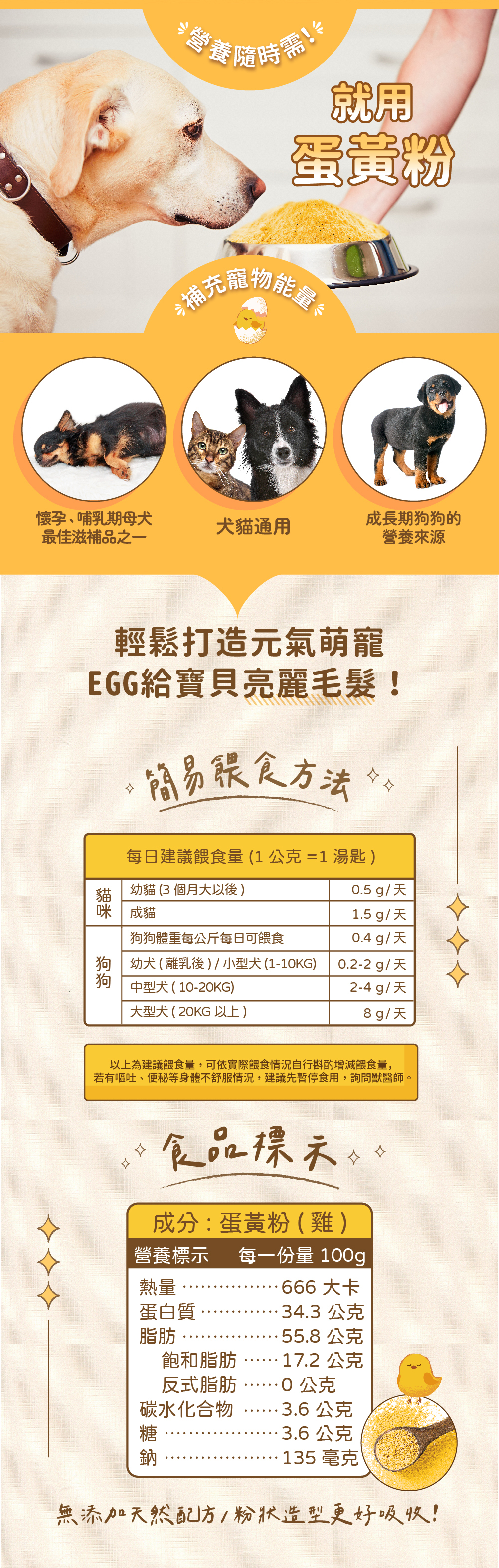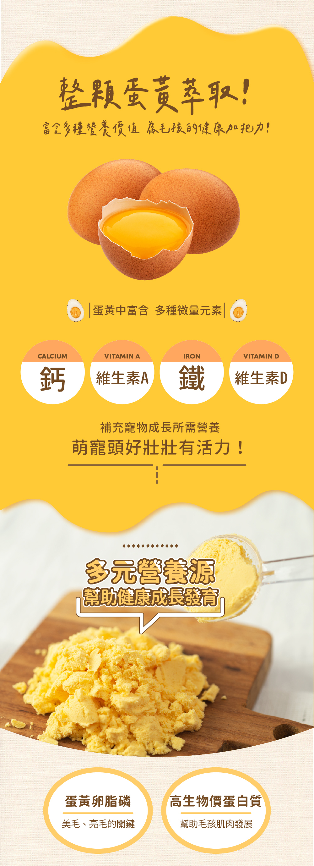 • 適合犬貓的蛋黃粉,自然美毛亮毛