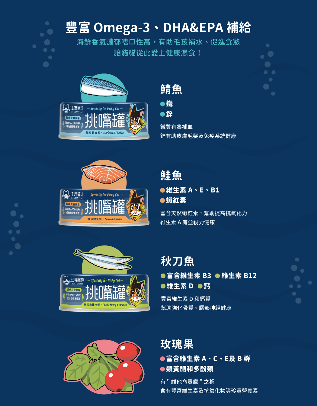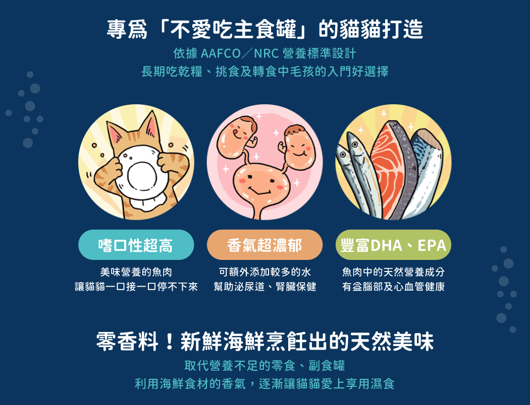 • 專為熱愛海鮮毛孩打造的全營養主食罐